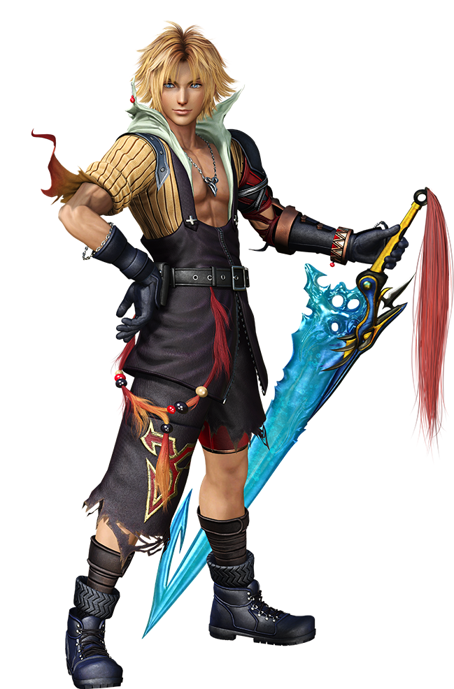 sure! Tidus is a fighter skilled towards speeds/evasion/accuracy before strength, but isn't physically weak either. He uses a blade but also knows some hand-to-hand, can be flexible on his feet (will jump around/use the terrain to boost himself), and can use moves of pure energy and also magic.